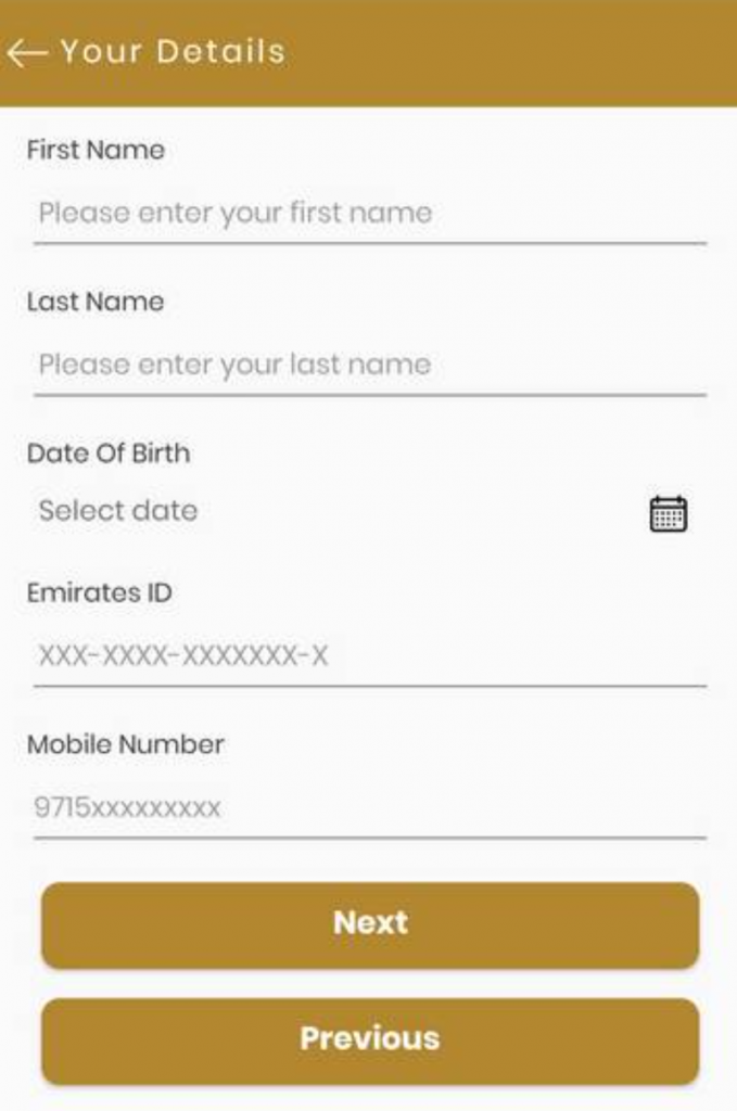 7.依次输入孩子的名字、姓氏、出生日期、阿联酋ID和手机号码