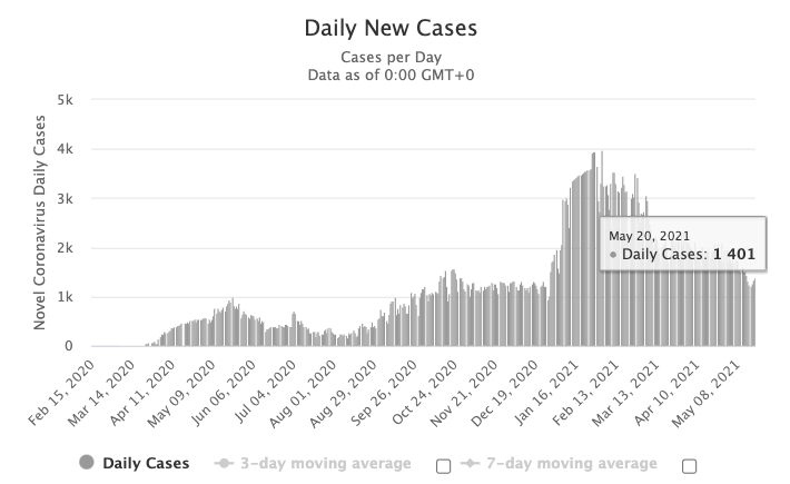 图源:worldometers,数据截止至5月21日中午