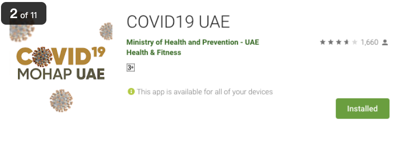 1.在Google商店或者Apple Store中下载COVID19 UAE APP。
