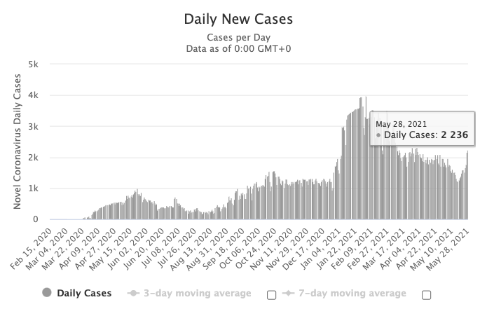 图源:worldometers,数据截止至5月29日中午
