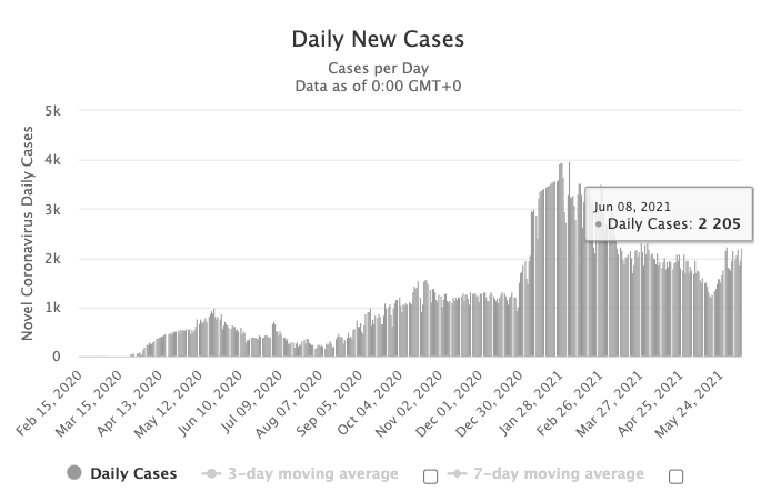 图源:worldometers,数据截止至6月9日中午