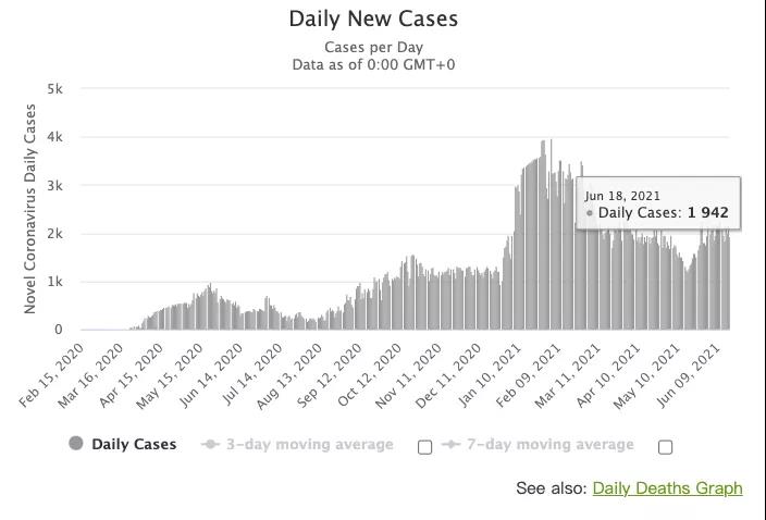 图源:worldometers,数据截止至6月19日中午