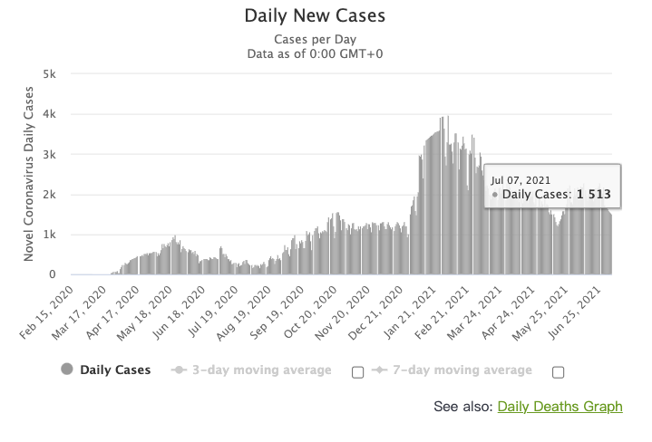 周三(7.7),阿联酋卫生和预防部宣布,在进行了287544次病毒检测之后,该国单日新增1513例感染病例,感染总数为644114例。