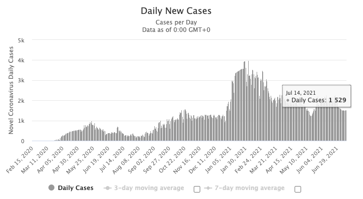 图源:worldometers,数据截止至7月15日中午