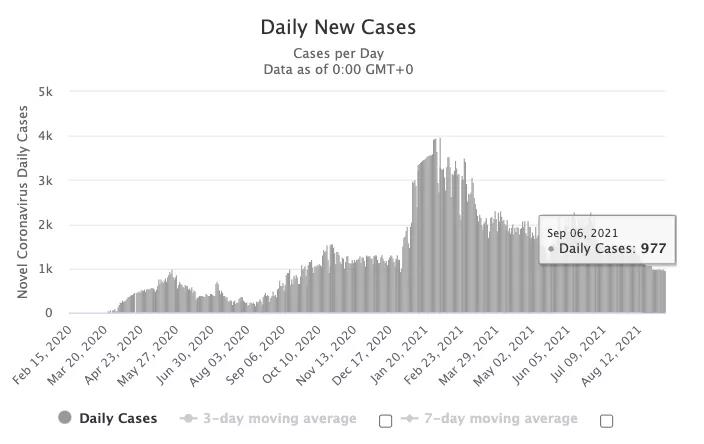 周一(9.6),阿联酋卫生和预防部宣布,在进行了285614次病毒检测之后,该国单日新增977例感染病例,感染总数为724240例。