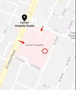 那天我也是早早的就7点出发了,但是到了United Medical Center之后,找了半小时才找到地点,是问了前台保安才到的,如下图是我定位的停车场入口(Wafi City 迪拜莱福士酒店附近,同样需要带护照和250迪拉姆),需要先进入停车场,到了里面之后会有扶梯直达,只要见到很多国人,那就错不了了。