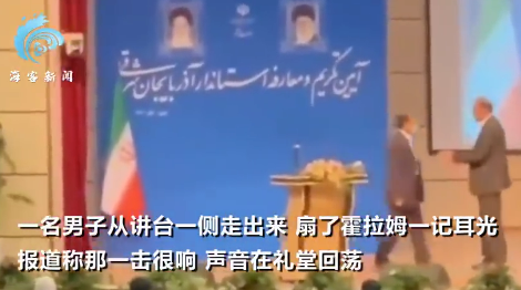 据今日俄罗斯报道,23日,伊朗东阿塞拜疆省新任省长阿贝丁·霍拉姆准备发表就职演说时,一名男子从讲台一侧走出来,扇了霍拉姆一记耳光,报道称那一击很响,声音在礼堂回荡,随后数名安保人员把这名男子从讲台上拉下来。