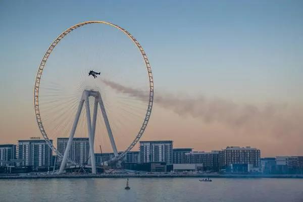 2019年,Jetman Dubai 飞行员文森特·雷菲特和弗雷德·富根以破纪录的200m低空飞越谢赫扎耶德路。