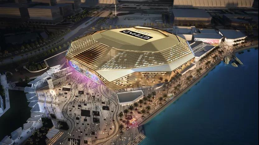 这场比赛的举办地点是阿提哈德竞技场,场地的外观设计超级高大上。