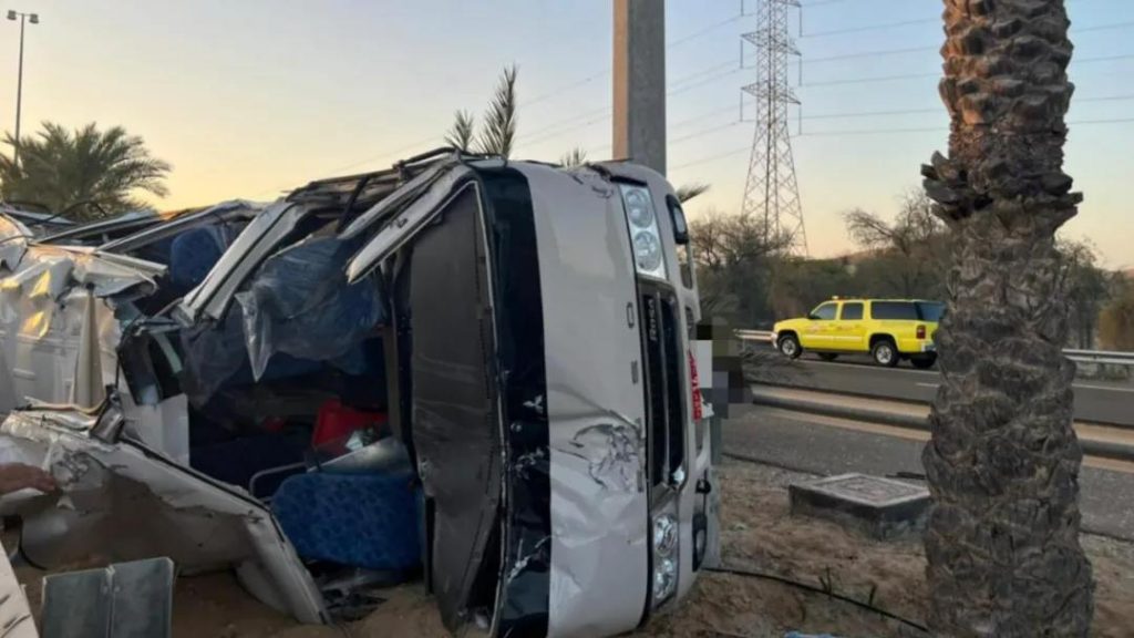 在阿布扎比-艾因路,一辆公共汽车与另一辆车相撞,导致2人死亡,11人受伤,阿布扎比警方表示,所有受害者都是亚洲人。