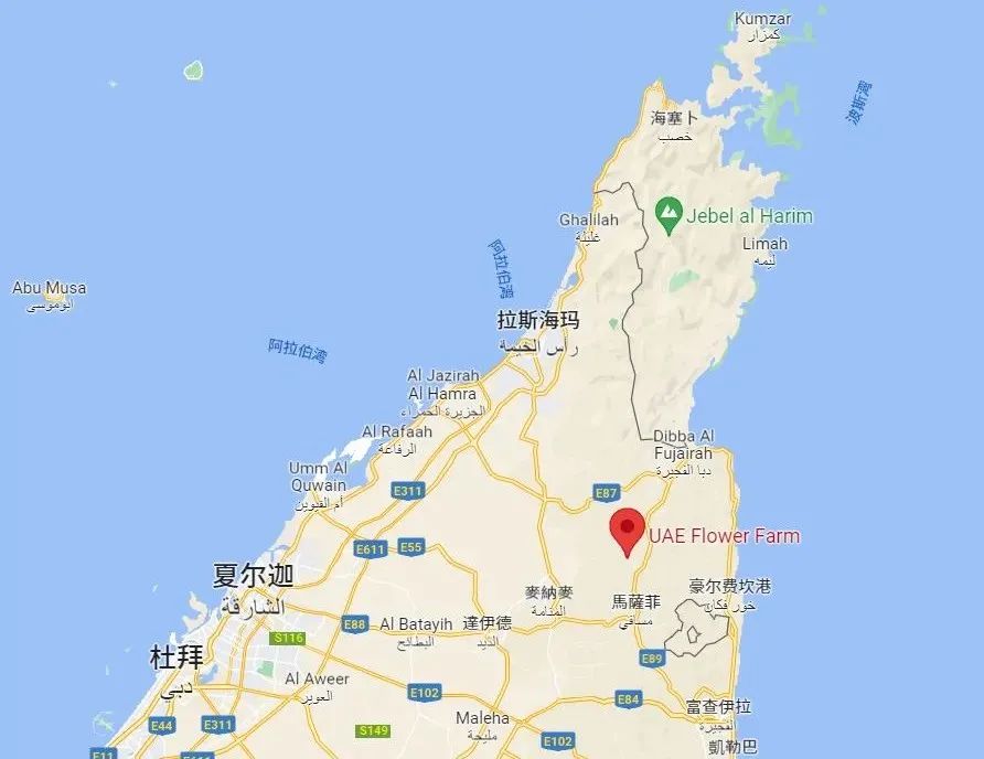 - 地址:Wadi Asimah, off the Masafi-Dibba (E89) highway(导航搜索UAE flower farm可达)