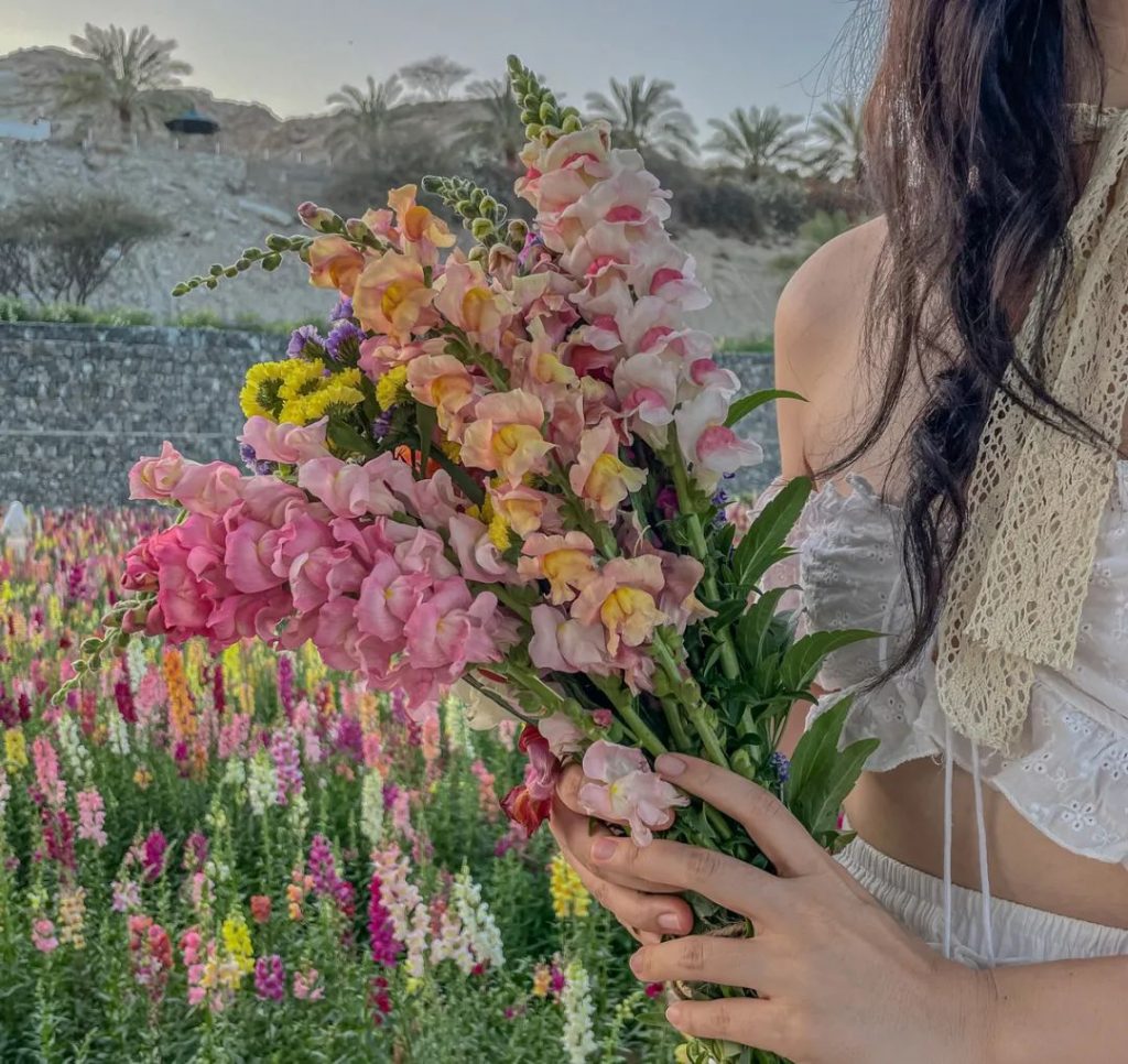 UAE Flower Farm有好多片花田,薰衣草、剑兰、向日葵、金鱼草和金盏花等是这里的标志性花卉,伴随着金色的阳光和远处的山峦,出片率非常高,建议小仙女们穿着白色衣服来更有仙气呐~