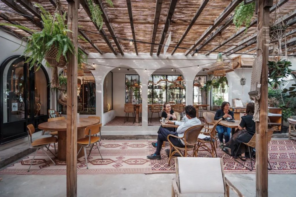 整个建筑设计灵感来自70年代具有摩尔风格的加州别墅,复古又别具一格。这里的咖啡餐厅更强调的是一种健康生活的概念,食材普遍选择有机食品,旨在让每一位顾客体验到原生态,让生活节奏慢下来。图片图片