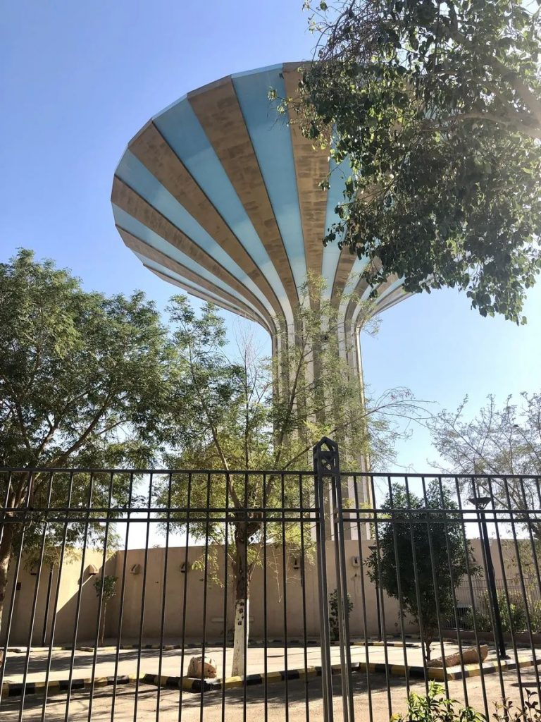 紧接着我们来到了利雅得水塔,这座16层楼高的水塔曾是利雅得的标志性建筑,直到2000年以后被费萨莉亚塔(Al Faisaliyah Center)所取代。水塔曾向游客开放,里面还设有一家餐厅。其颜色常有变化,曾经是天蓝色,而今天我们看到的是灰色。
