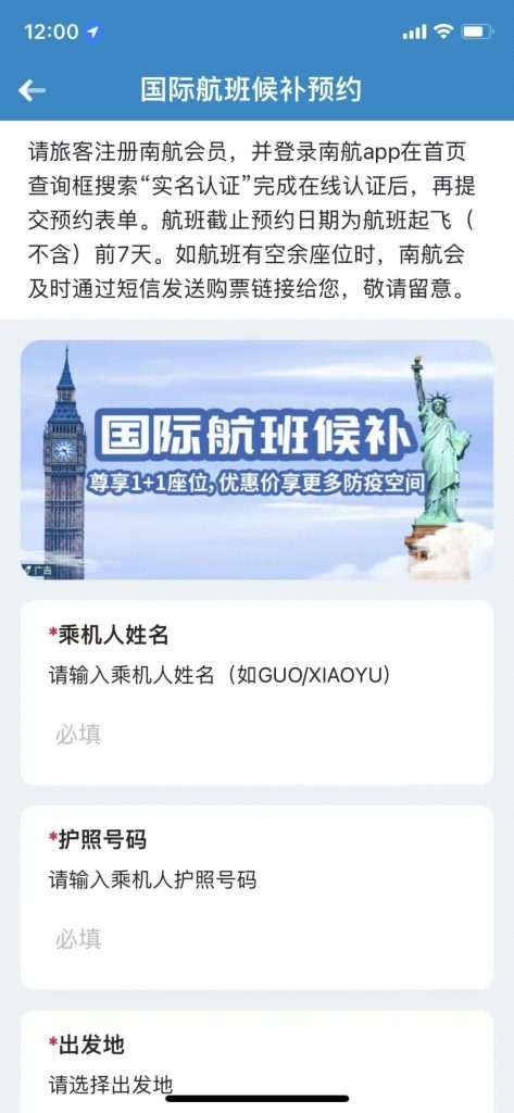 请注意:完成实名认证方可进行航班预约购票!