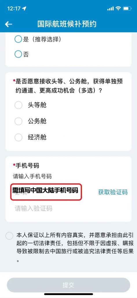 三、填写预约信息(须填写中国大陆手机号码)
