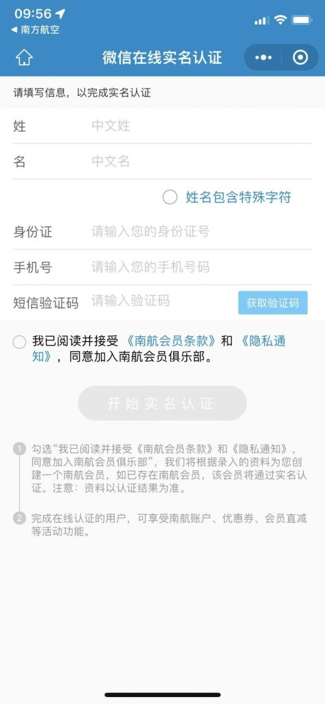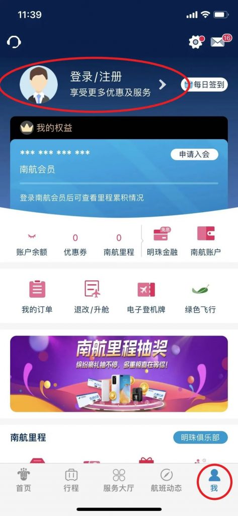 一、下载“南方航空”APP,免费注册南方航空会员并完成实名认证。