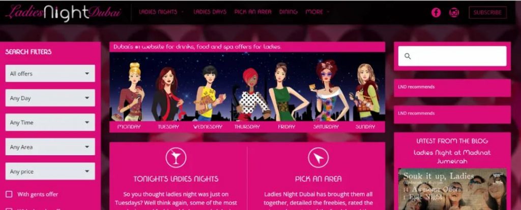 因为提供Ladies Night的酒吧和餐厅太多,以至于迪拜有个专门的网站来整理全城的Ladies Night信息。
