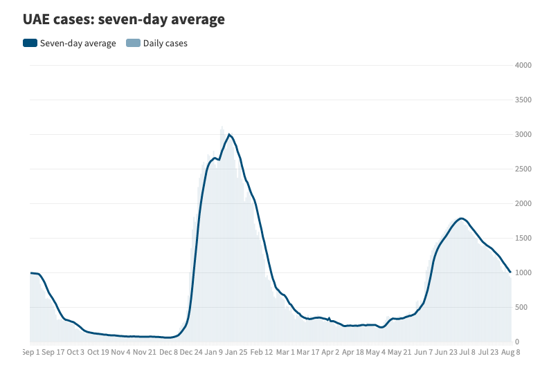 周一(8.8),阿联酋卫生和预防部宣布,在进行了142798次病毒检测之后, 该国单日新增923例感染病例,感染总数为999637例。