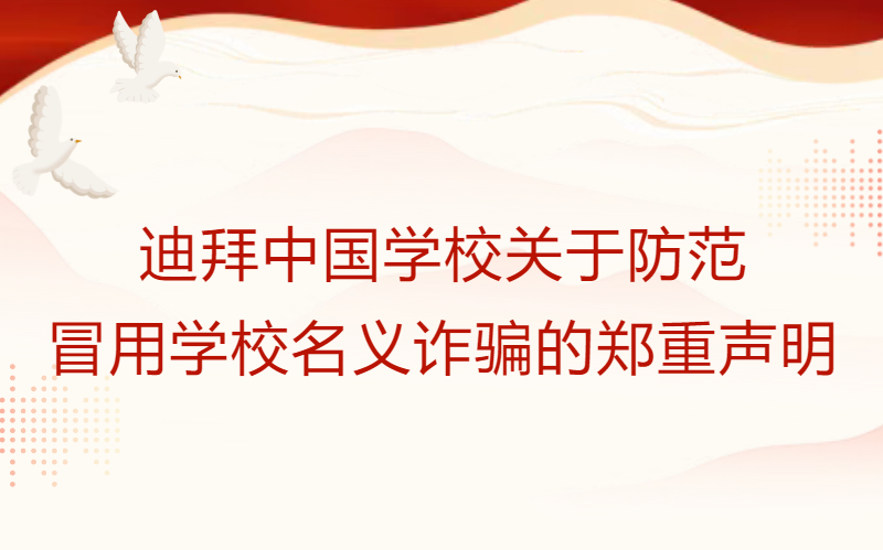 近期,我校发现有不法分子冒用“迪拜中国学校”名义,甚至伪造学校某部门负责人身份对外开展诈骗活动,此类行为严重侵害我校声誉,也对社会公众及合作机构的财产安全构成威胁。