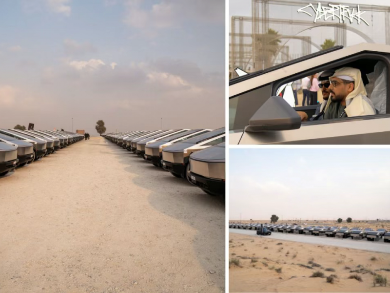 据悉,这是美国以外规模最大的Cybertruck单日集中交付活动之一。当晚,所有Cybertruck车主共同参与了一场同步灯光秀,特斯拉将其称为阿联酋最大规模的Cybertruck灯光秀。