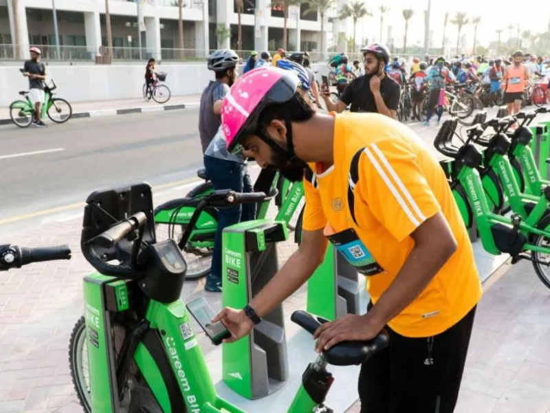 大家可从Careem的临时停车站领用免费自行车,先到先得。地点包括:Entrance A Museum of the Future (MOTF)、Entrance E – Lower FCS – Financial Centre Road。