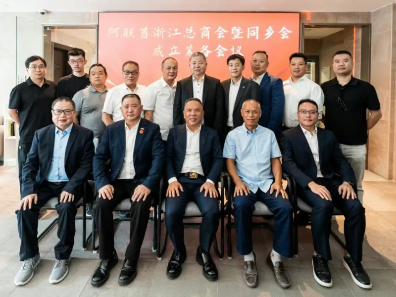2025年8月20日,阿联酋浙江总商会暨同乡会成立筹备会议于迪拜举行。阿联酋龙城华侨华人总商会、台州商会、安吉商会、湖州商会、绍兴商会、义乌商会、温州同乡会、温州龙湾商会、金华商会(筹)、华侨华人联合会及企业代表共聚一堂,一致同意共同发起成立阿联酋浙江总商会暨同乡会。