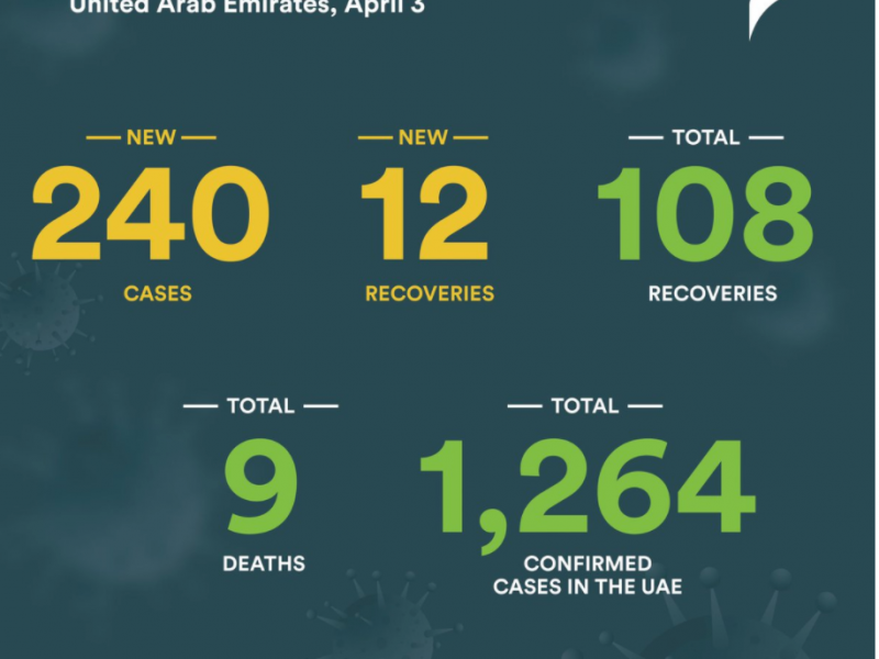 阿联酋疫情汇总(4.4)|单日新增240例创新高,总数达1264例,中东破9万确诊 by guocongPosted on04/04/202004/04/2020 迪拜人传媒持续跟进阿联酋疫情中! Read More