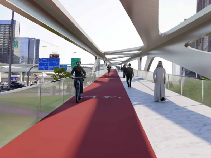 这条新自行车道经由Hessa街将Al Sufouh与迪拜山庄连接起来,其中有两座建筑风格新颖的桥梁横跨谢赫⋅扎耶德路和Al Khail路。