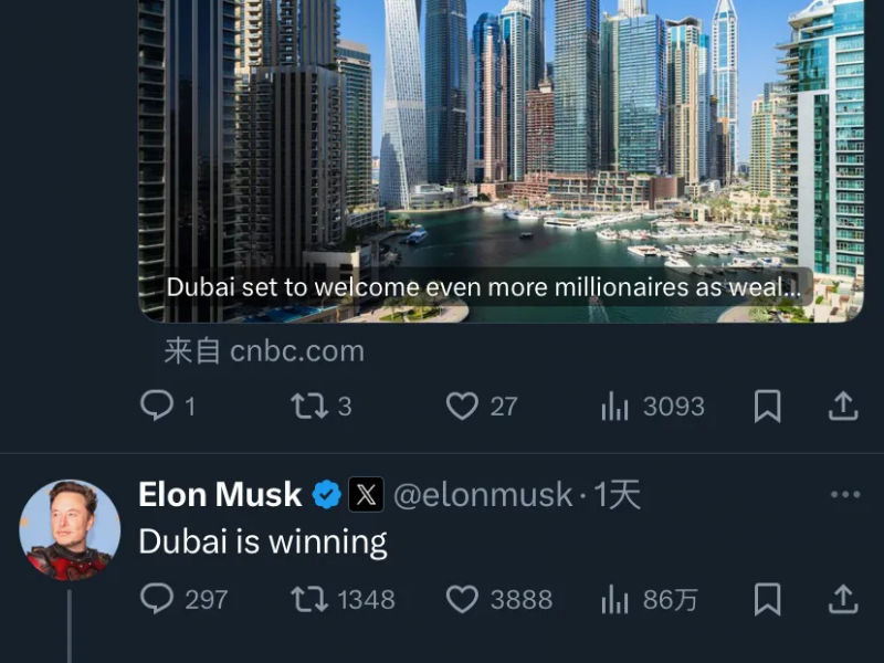 英国“破产”,富人开“润”,迪拜躺赢|马斯克表示迪拜“正在取得胜利”,今年将吸引6700名百万富翁