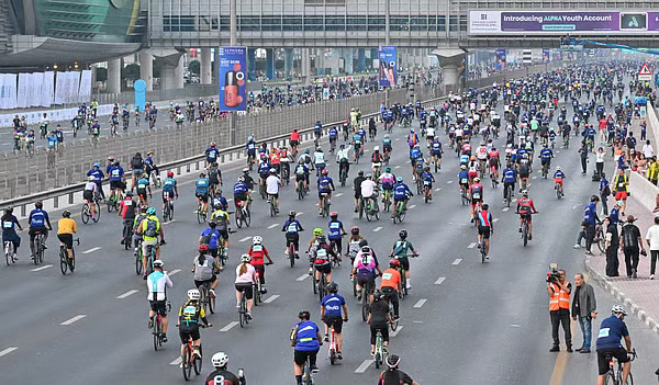 为了让骑行活动顺利进行,骑手们在凌晨4点便开始陆续抵达集合点。道路从凌晨3点起逐步封闭,迪拜地铁也提前开始运营,以方便参与者准时到场。