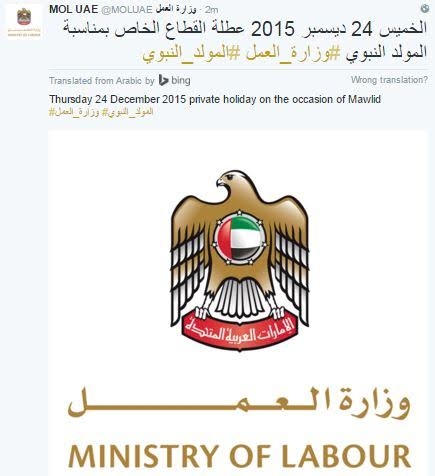 庆祝先知生辰日 12月24日为阿联酋公共假期